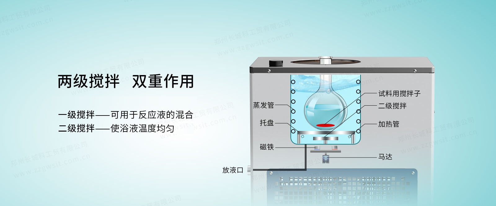 低溫恒溫攪拌反應浴DHJF-4005A整套裝置由制冷系統、加熱系統、循環系統及控制系統等組成。