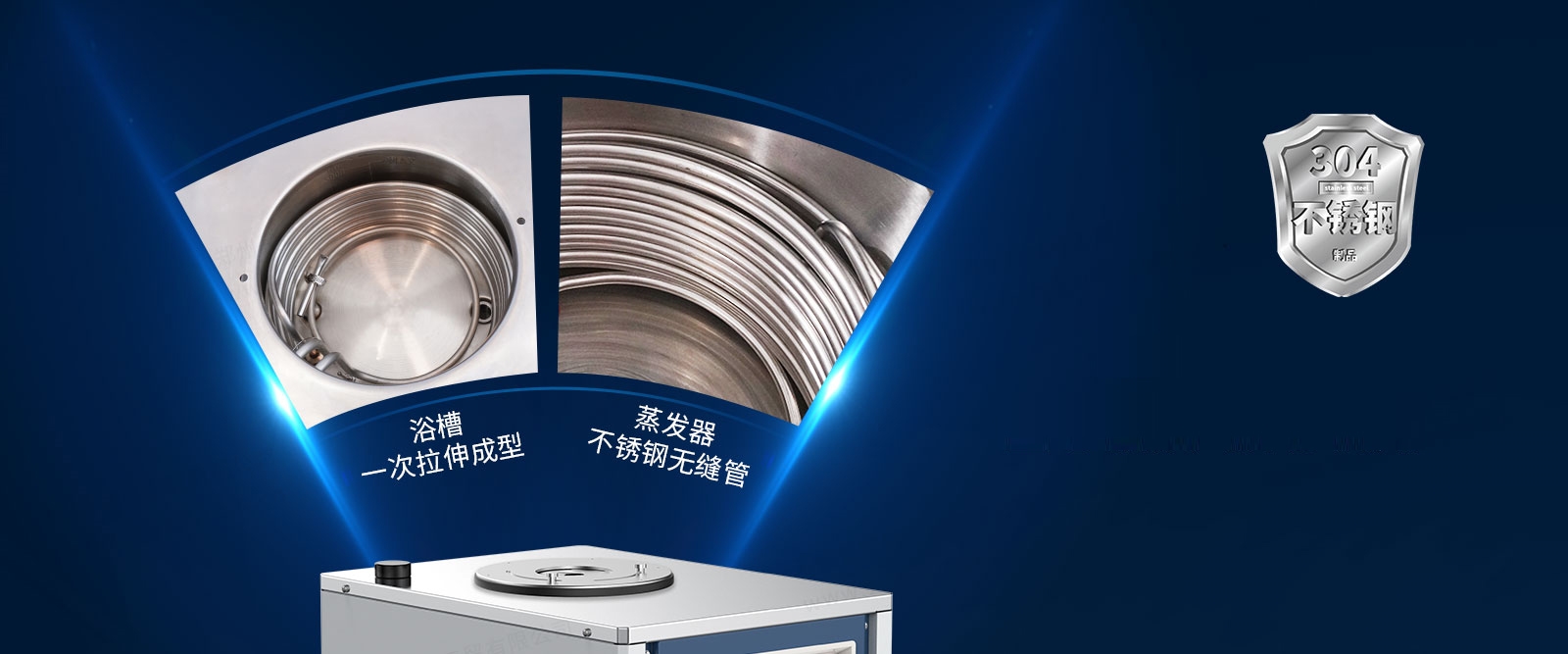 蒸發器:采用304不銹鋼盤管式蒸發器,換熱效率高;蒸發器安裝在儲液槽內,載冷劑凍結時不會損壞蒸發器。